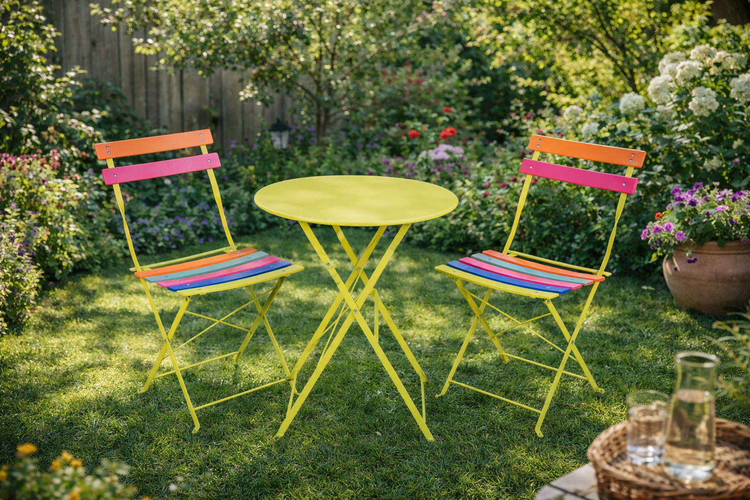 - Platzsparend: Klappfunktion für Tisch und Stühle