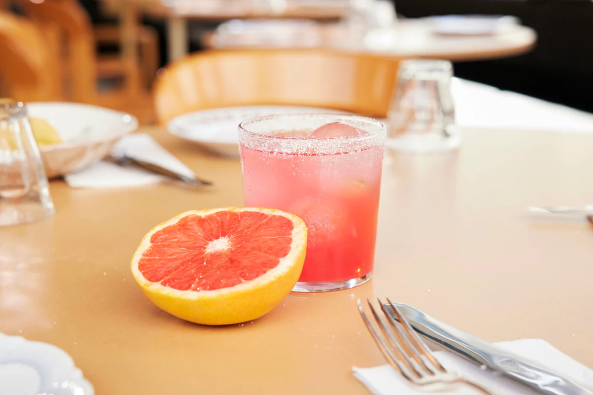 - Garnitur: Eine Scheibe Pink Grapefruit oder Rosmarinzweig